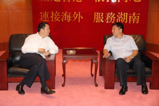 刘胜辉董事长和何寄华副市长、黎勇顾问在三湘大厦37楼会见室交流。