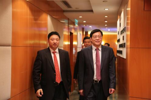 杜家毫省长(右)在刘胜辉董事长陪同下视察集团办公环境。