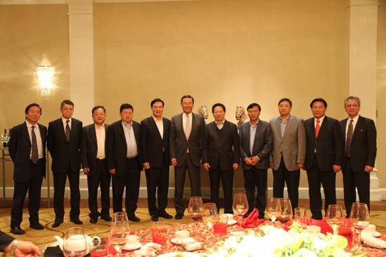 湖南省政协主席陈求发(右五),省政协党委、省政协港澳台侨和外事委员会主任孙青乃(右四),省政协常委、长沙市政协主席范小新(左四),省政府港澳事务办副主任黎里溪(左三)一行在三湘集团有限公司董事长、总裁刘胜辉(右三)陪同下拜访香港九龙仓集团,并同九龙仓集团主席吴光正(中)等合影留念。