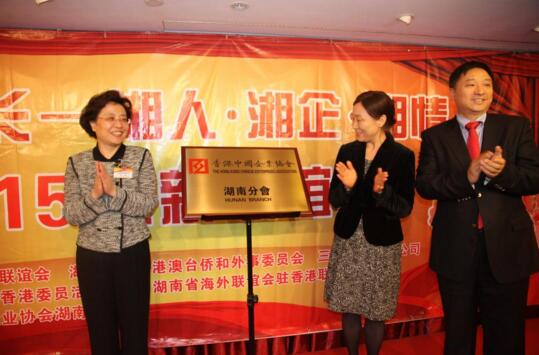 12月19日晚,香港中国企业协会湖南分会揭牌仪式在香港三湘大厦3字楼顺利举行。香港中国企业协会副总裁朱华先生宣读了关于成立香港中国企业协会湖南分会的决定。中央人民政府驻香港特别行政区联络办公室副主任仇鸿女士,湖南省委常委、省委统战部部长李微微女士,为香港中国企业协会湖南分会揭牌,香港中国企业协会副总裁朱华先生,湖南省海外联谊会副会长、香港中国企业协会湖南分会会长、三湘集团有限公司董事长刘胜辉先生陪同揭牌。