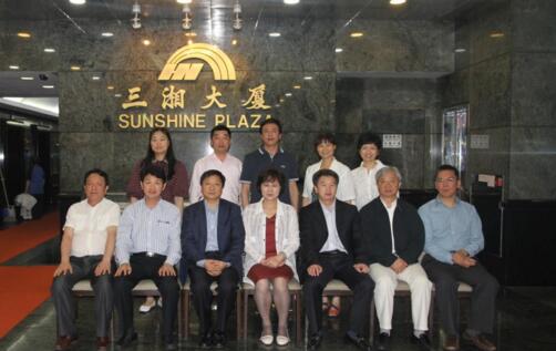湖南省副省长黄兰香(前排中)率省政府副秘书长陈仲伯(前排左二),省经信委主任谢超英(前排右二),省国资委副主任张美诚(前排左一),省华菱集团董事长曹慧泉(前排右一)等视察三湘集团,与中联办经济部部长孙湘一(前排右三),三湘集团有限公司董事长、总裁刘胜辉合影留念