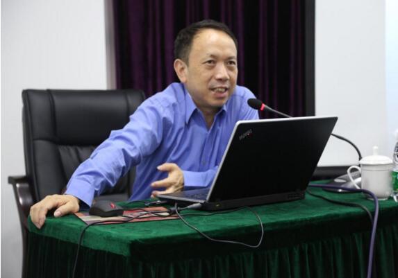 图为湖南师大法学院院长、教授肖北庚在进行专题讲课