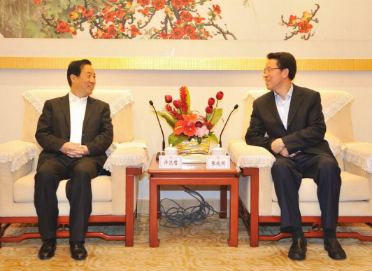 副省长何报翔、向力力,省政府秘书长王群,省直相关部门负责人,集团董事长刘胜辉陪同会见。