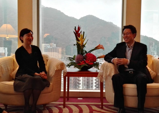 5月22日,省政协主席李微微、省委常委、统战部长黄兰香赴中央人民政府驻香港特别行政区联络办公室,与张晓明主任、林武副主任进行了会谈。