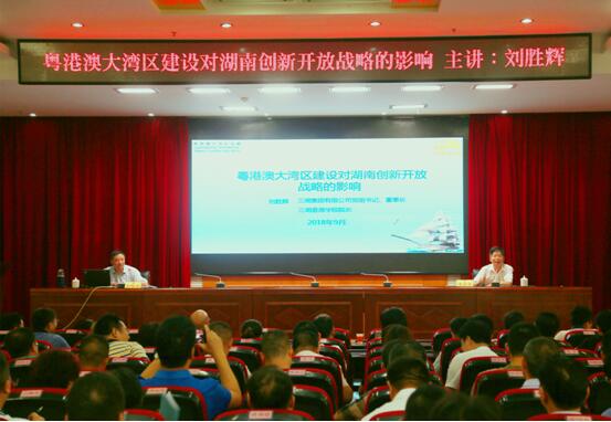 受湖南省社会主义学院特邀,集团公司董事长、三湘香港学院院长刘胜辉,以“粤港澳大湾区建设对湖南创新开放战略的影响”为主题,为全体学员现场授课。省社会主义学院副院长黄自荣主持。