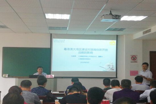 刘胜辉从粤港澳大湾区建设的基本内容,粤港澳大湾区的战略背景、目标与意义,湖南面临的挑战与机遇三个方面进行系统阐述,让在座的学员受益匪浅。
