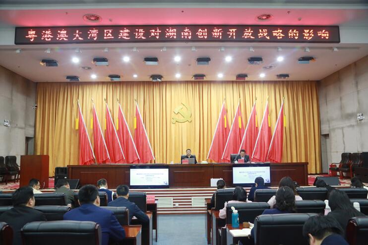 会上,根据中共中央、国务院2月印发的《粤港澳大湾区规划纲要》主要内容,刘胜辉结合国际国内背景,从粤港澳大湾区建设的基本内容和发展基础入手,充分介绍了粤港澳大湾区的战略背景和重大意义,深度剖析了湖南面临的挑战与机遇,条分缕析,层层深入,起到了释疑解惑、指点迷津的效果。