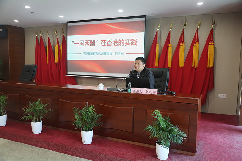 刘胜辉指出,不断丰富和发展“一国两制”在香港特别行政区的实践,保持香港长期繁荣稳定,是民族复兴中国梦的重要组成部分,也是完善和发展中国特色社会主义制度、推进国家治理体系和治理能力现代化的必然要求。作为湖南省驻港窗口企业,三湘集团必须要把坚持“一国”原则和尊重“两制”差异结合起来,牢固树立“一国”意识,坚守“一国”原则,正确把握和处理中央和特别行政区的关系,切实维护国家安全,绝不容忍任何挑战“一国两制”底线的行为。