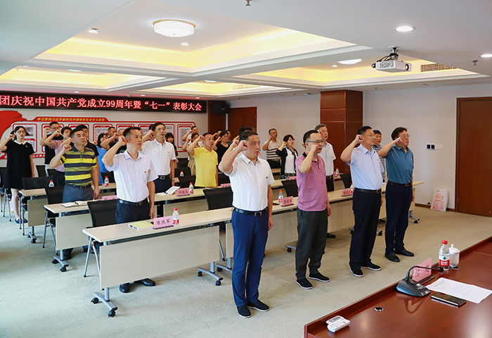 大会在庄严的《国歌》声中拉开序幕,由党委书记刘胜辉带领全体新老党员宣誓并重温入党誓词。