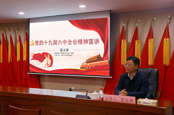 报告会上,蔡文辉围绕习近平总书记在党的十九届六中全会上的重要讲话和全会审议通过的《中共中央关于党的百年奋斗重大成就和历史经验的决议》,从“充分认识党的十九届六中全会的深远意义、深刻领会党的十九届六中全会的精神实质、准确把握党的十九届六中全会的实践要求”三个方面,全面、系统、生动地对全会精神进行宣讲和解读。