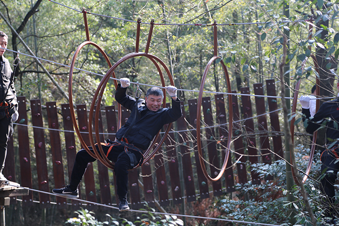 在《丛林穿越》活动中,各小组通过网道、步道、悬空桥梁、轮胎、索道等环节在丛林中探险,全体员工互帮互助,克服困难,坚持到了最后,进一步增强了团队凝聚力。活动中还参观了天空玻璃廊桥,桥悬于天际,人坐在云中,山水环绕,尽收眼底。大家彼此交流谈心,加深了解,增进了友谊,也让三湘这个大家庭的团队凝聚力进一步增强和展现,为日常工作更是积蓄了满满的正能量。
