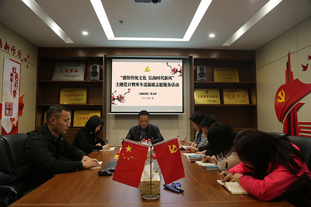 为进一步继承和弘扬中华优秀传统文化,切实加强党和人民群众的密切联系,1月10日,正值农历腊八,三湘集团第二党支部开展了“感悟传统文化 弘扬时代新风”主题党日暨寒冬送温暖志愿服务活动。活动由支部书记陈铁军主持,支部党员、预备党员、入党积极分子、群众参加。