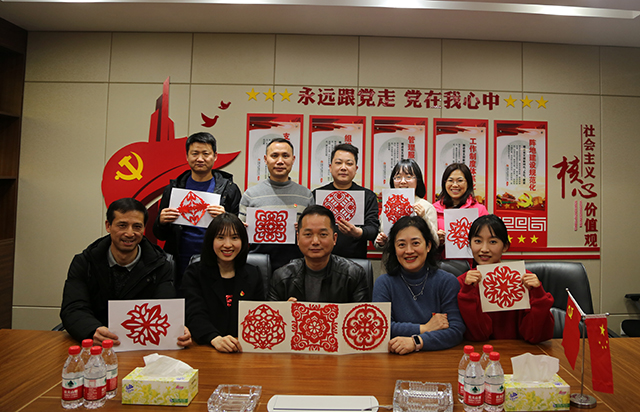 活动中,陈铁军同志作主题发言。他向大家介绍了剪纸的由来、历史文化以及方法和注意事项。大家听后,手持剪刀和彩纸跃跃欲试,在彼此的互帮互助下,都认真剪出了各式各样的窗花。