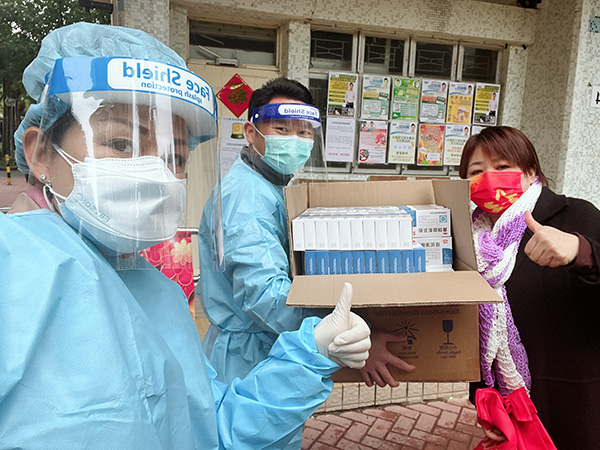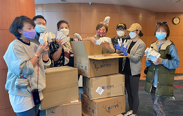 ▲图为三湘集团义工队及香港湖南联谊总会义工向湖南在港企业员工和湖南在港乡亲赠送抗疫物资。